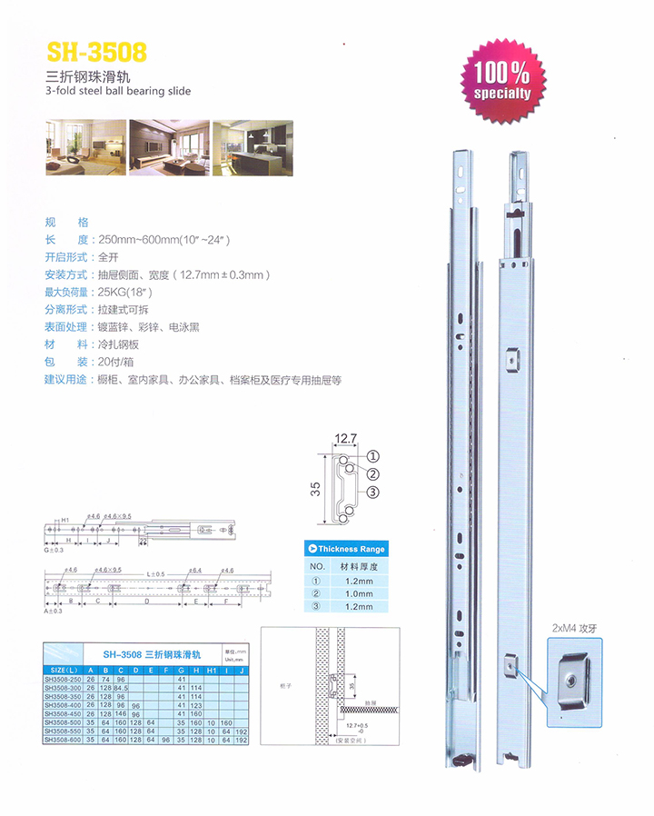 SH-3508 三折钢珠滑轨